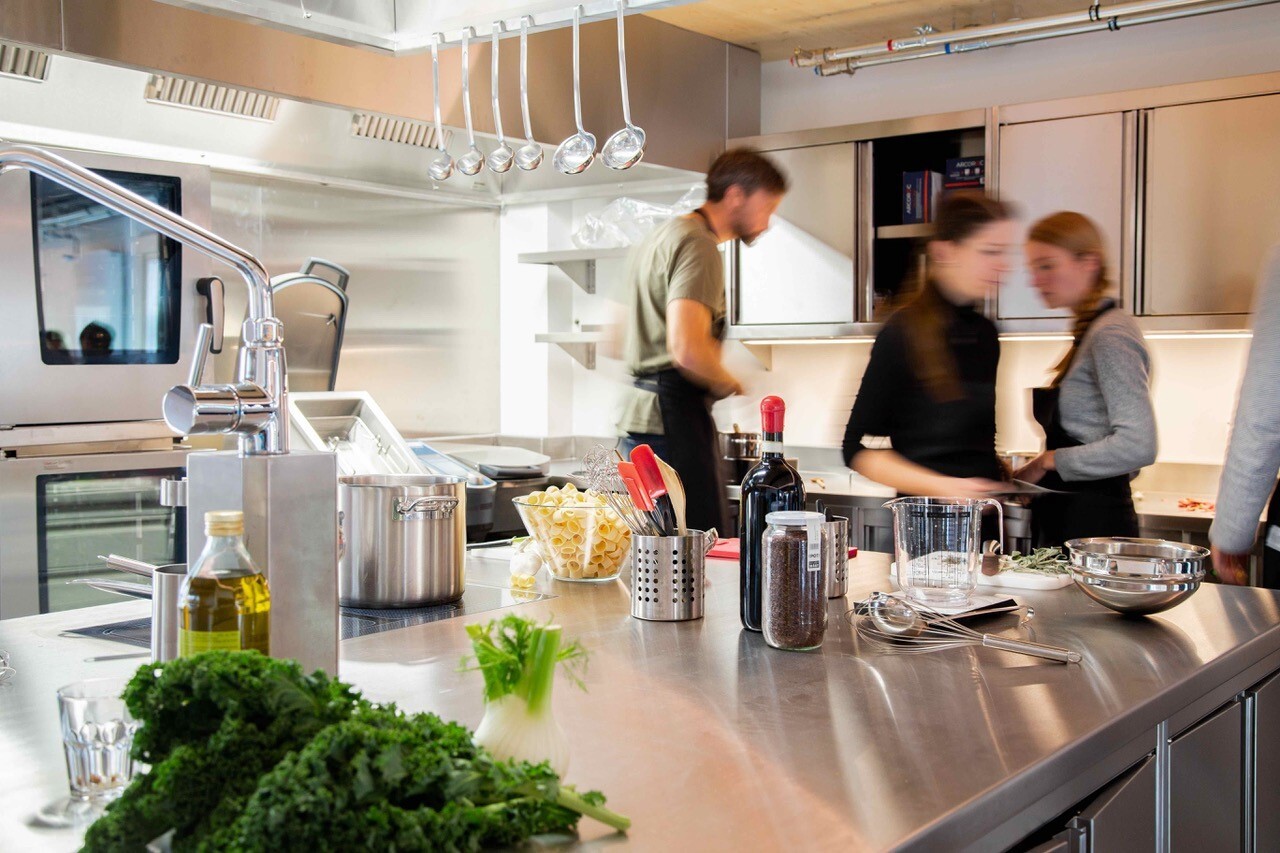 Organisationen können bei dieCuisine einen CSR-Teamseinsatz buchen. Unter professioneller Anleitung kocht das Team Menüs und konserviert Überschüsse für die Lebensmittelabgabe.